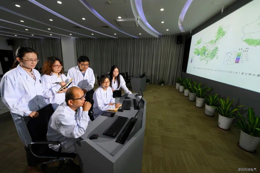 中國(guó)電科院數(shù)值天氣預(yù)報(bào)團(tuán)隊(duì)在實(shí)驗(yàn)室研討電力氣象預(yù)報(bào)結(jié)果