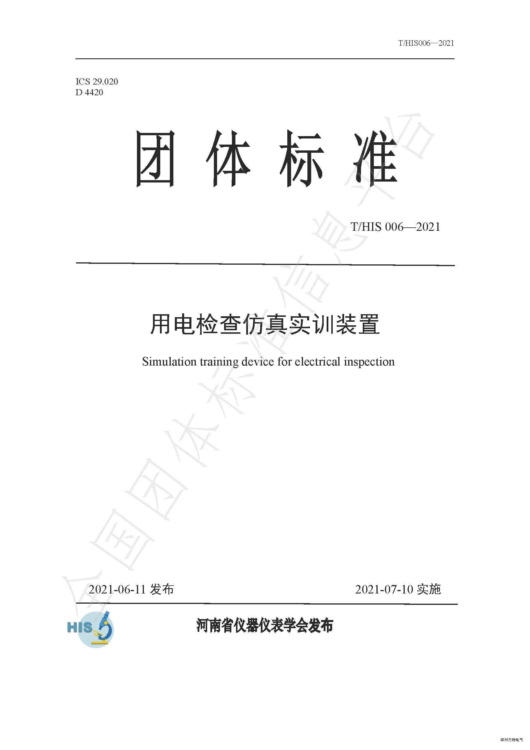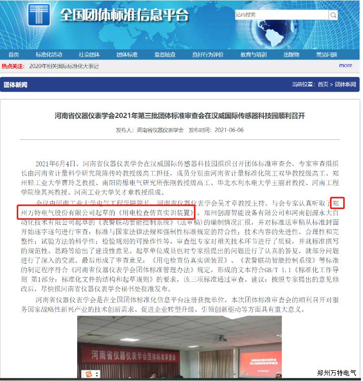 近日,由萬特電氣制定的河南省儀器儀表學(xué)會(huì)團(tuán)體標(biāo)準(zhǔn)《用電檢查仿真實(shí)訓(xùn)裝置》T/HIS 006,于2021年6月11日發(fā)布,將于2021年7月10日實(shí)施。