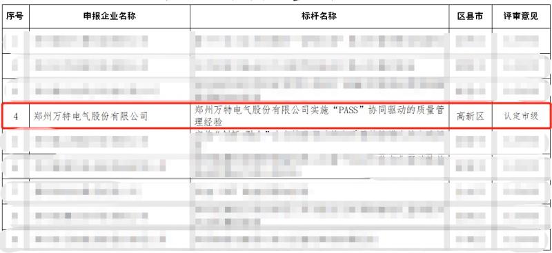 5月22日,鄭州市工信局公示,認定我公司實施“PASS”協(xié)同驅(qū)動的質(zhì)量管理經(jīng)驗為2023年鄭州市質(zhì)量標桿企業(yè),鄭州市此次共認定20家企業(yè),高新區(qū)僅有兩家企業(yè)通過。