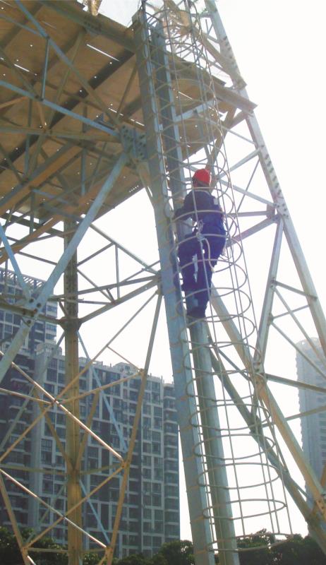 學員親身體驗項目。以親身體驗垂直登塔、爬梯的方式,使學員認識做好防止高空墜落措施的 重要性,掌握登高作業(yè)的正確方法。